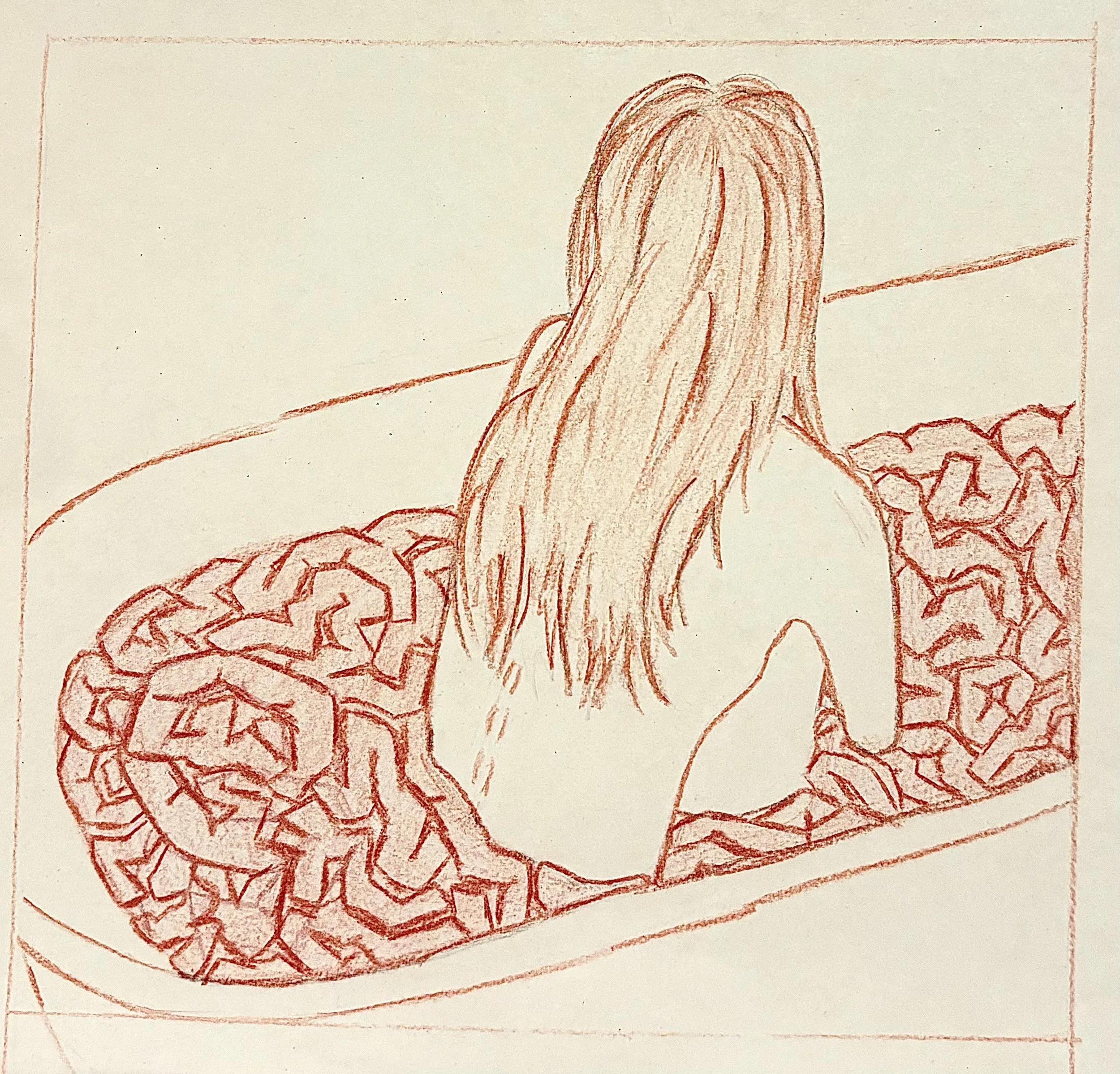 she s smoking before it takes her , and does it take her! a minute! to bend into her stomack and hide her head between her breasts, like flamingo, she’ll tell you that movement must cease. I stand there, like flamingo, like Roxie, who is still! Ceasing! And the botto m of the shower runs warmer , mixes with the sweat above her calves like warmaking. we